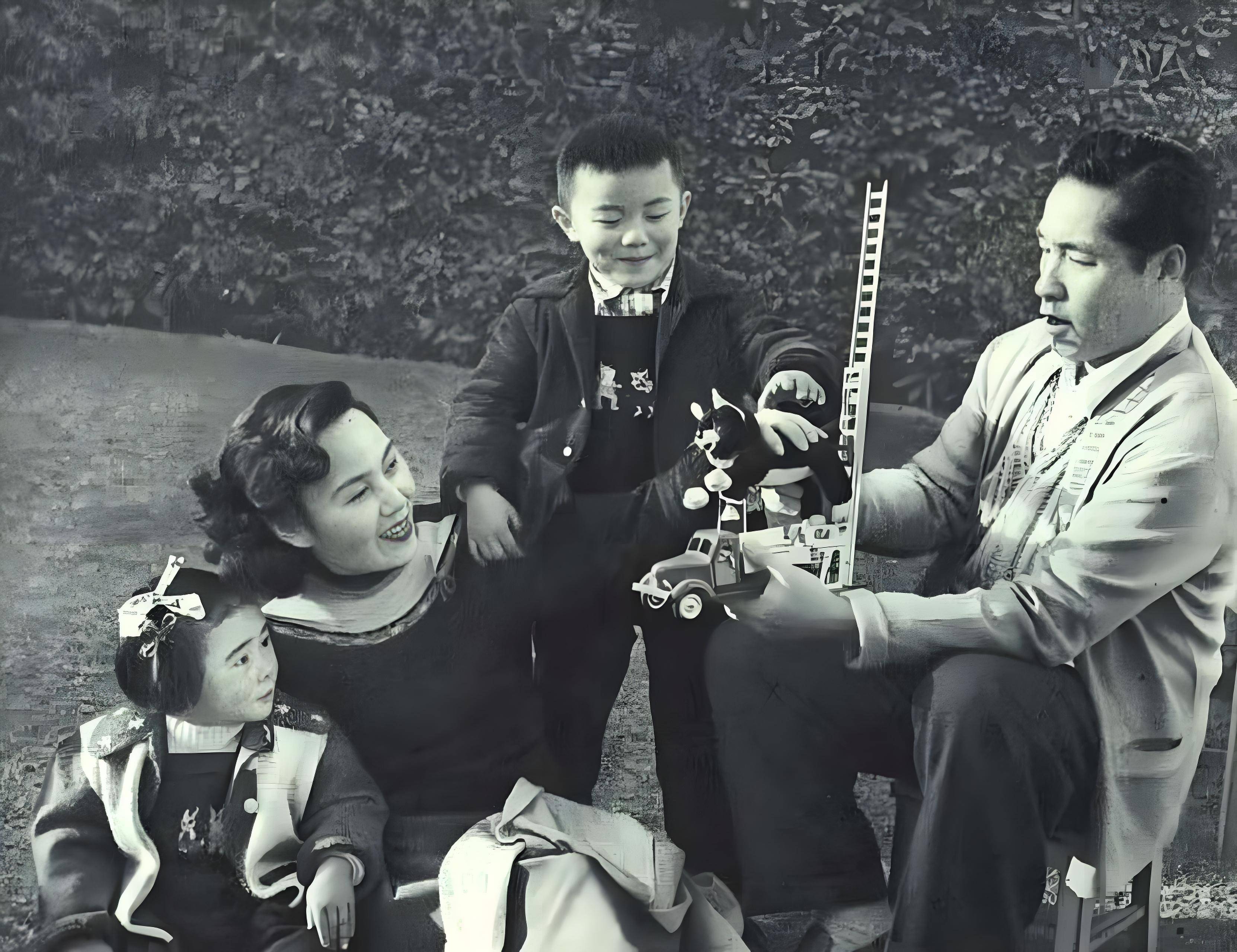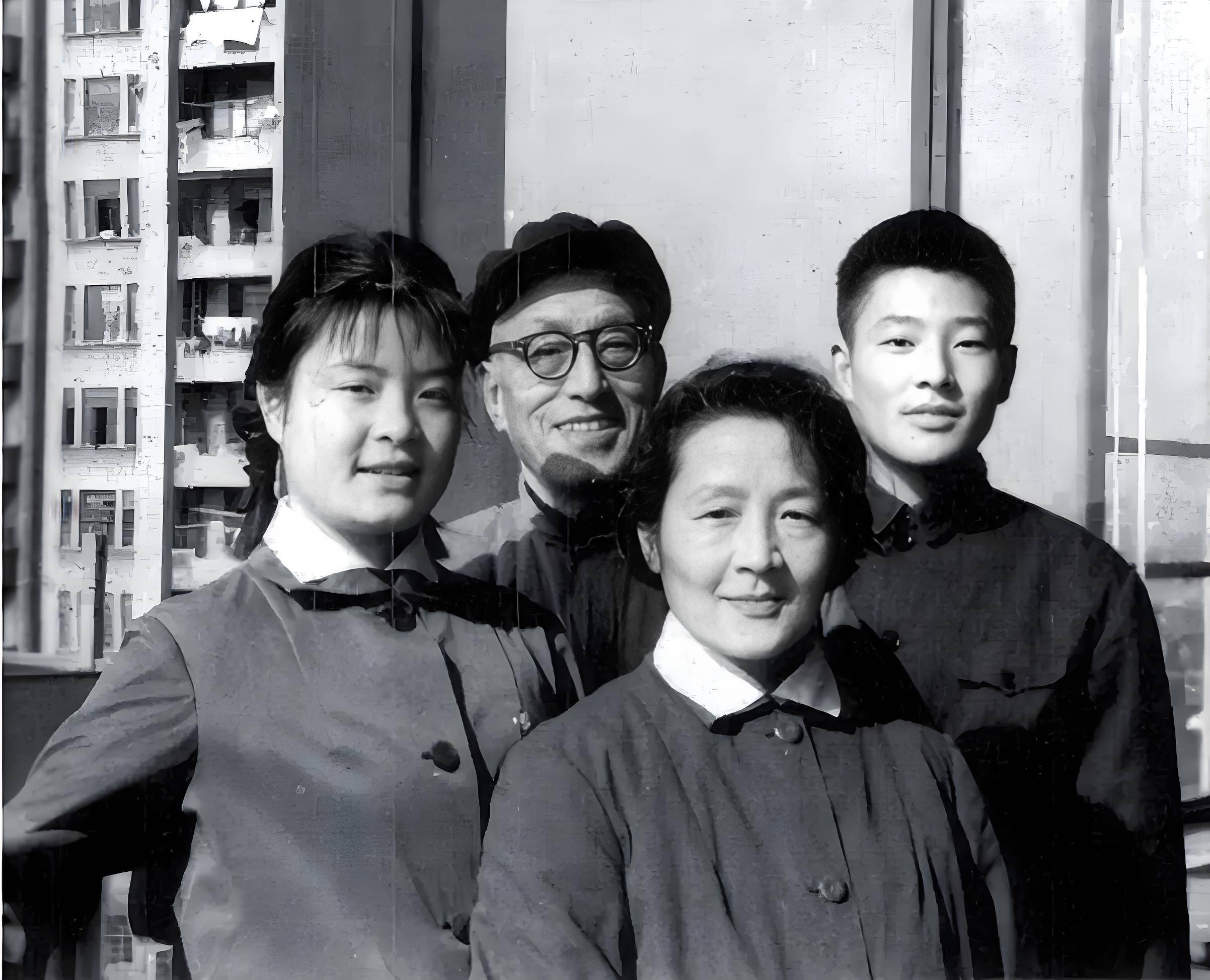 (70年代周小燕、张骏祥夫妇与一双儿女)