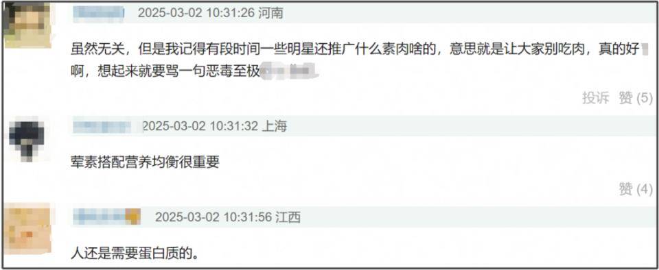 一时间,网友质疑她只是为了带货推广获取利润,实际上她并不爱吃植物肉。