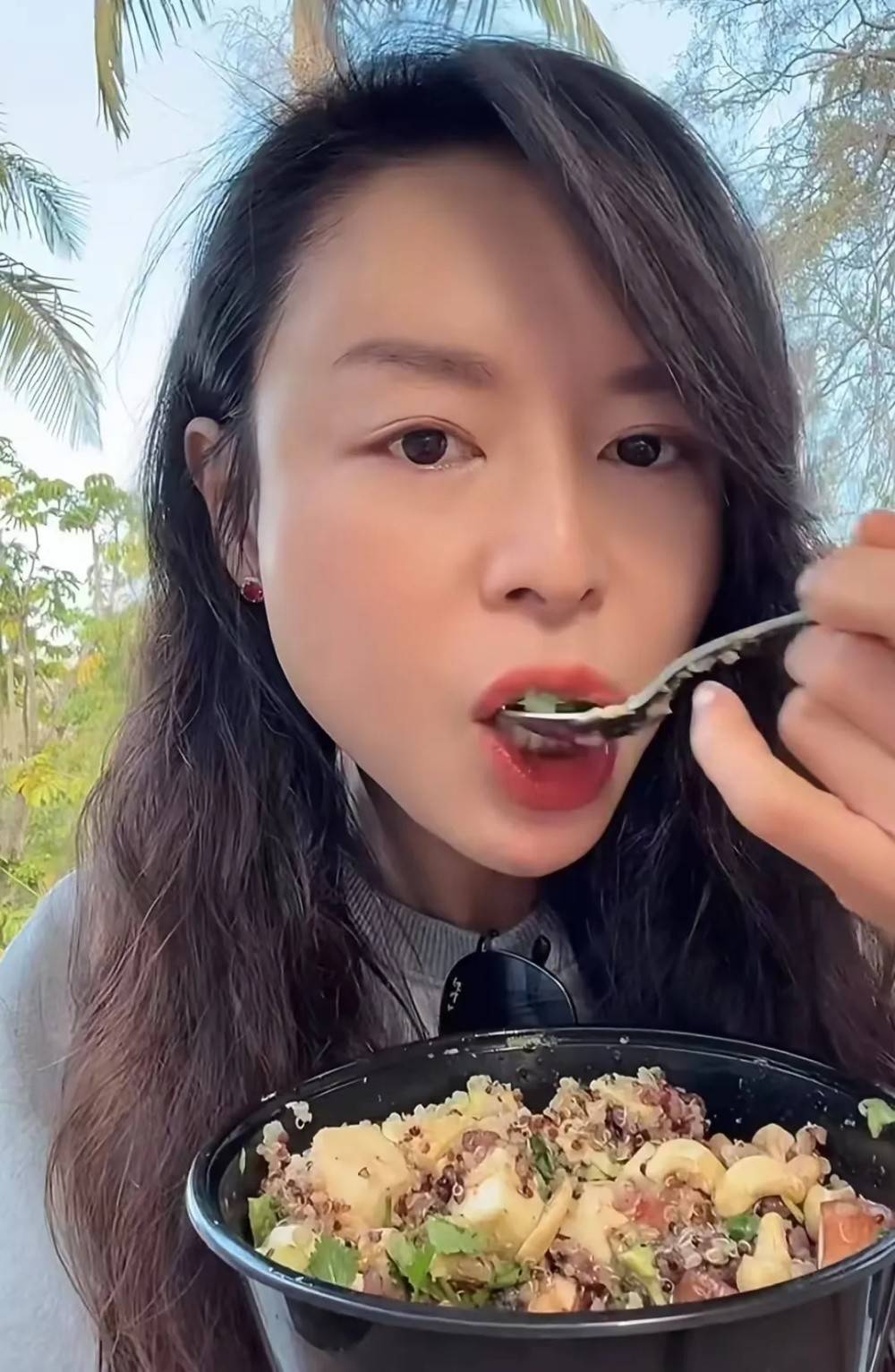 从她日常晒出的视频来看,她经常吃素食,还会变着花样把素食做成各种拌饭,同时还会吃一些营养补剂。