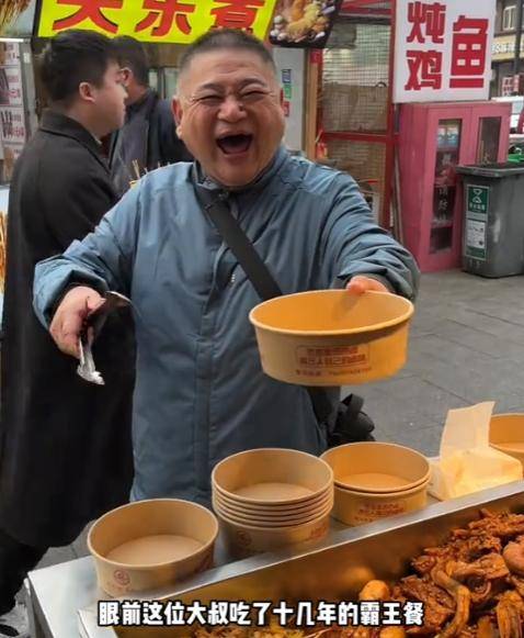 摊主居然也不恼怒,不仅没有赶人,反而爽快地递给华子哥一个碗,还大气表示:想吃啥自己拿,随便拿!