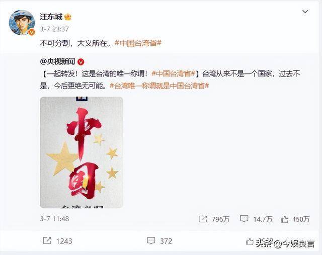 这次他直接甩出"不可分割,大义所在",被赞爱国典范。