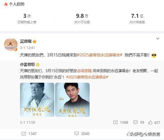 内容是给自己的好朋友姜育恒的演唱会宣传。