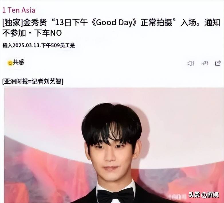 不知道是不是为了回应外界质疑,13日下午两点,金秀贤突然出现在《Good Day》录制现场,把节目组都整懵了。因为之前,韩媒刚说金秀贤要退出权志龙的综艺,连权志龙都点赞了相关动态。