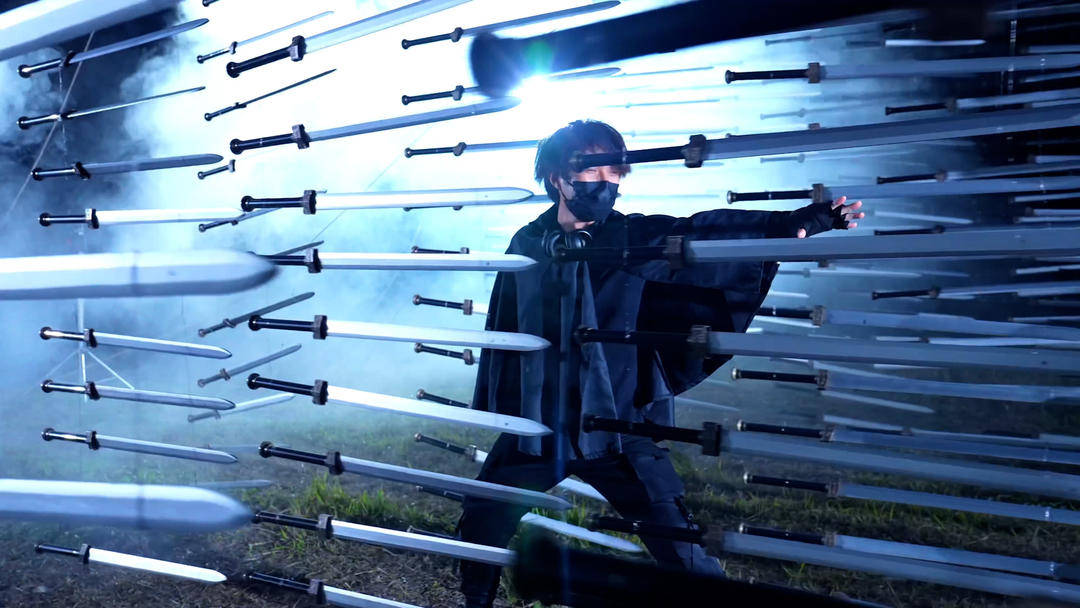 第二次拍“万剑归宗”,范十三铸造了一万把剑,把它们悬挂在钢丝上,利用体感遥控技术成功实现。“太过整齐、不够灵活、缺乏灵气。”虽然视频火了,但范十三认为可以更好,他计划下一步用无人机集群技术来改进。