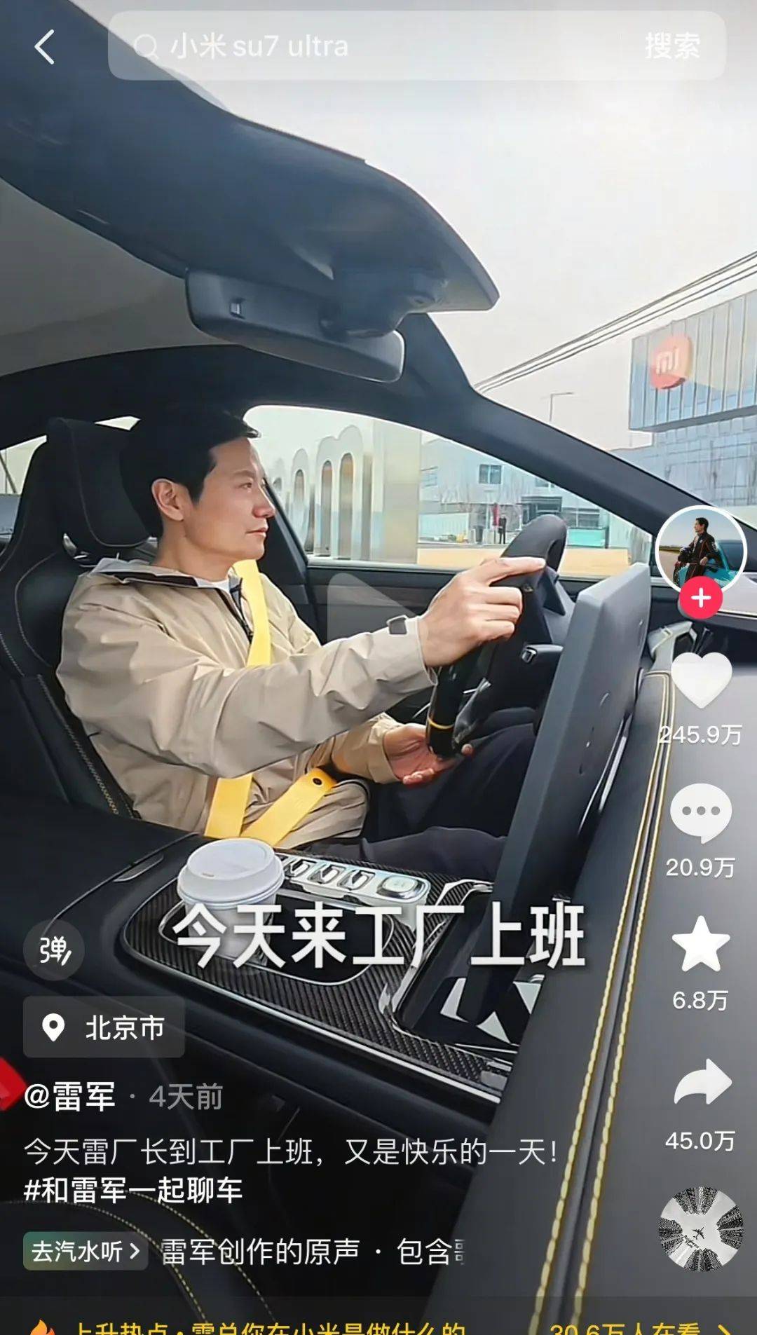为了给即将上市的小米su7宣传,他重新时期了抖音这一社交利器,营业超级积极,一口气发了多条趣味视频。