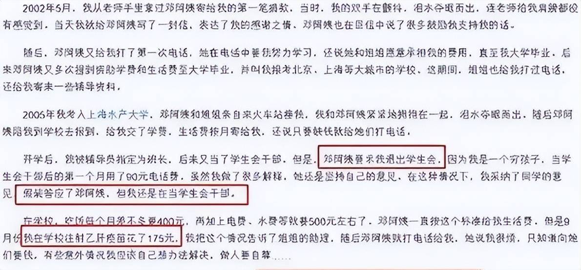 原来向海清的真实生活根本不是他在信中描述的那样,他不仅有孙俪资助的500生活费,还申请了学校里的贫困生名额,并且还有其他人的资助。