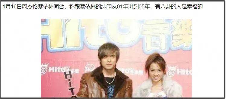 2005年1月,周杰伦还在“两头跑”,前脚和侯佩岑合唱,后脚和蔡依林同台聊绯闻。