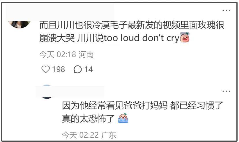 但也有网友指出玫瑰对孩子似乎也没有很关心,自己穿着名牌,孩子穿着却是旧衣服,毛子手里似乎也没钱。
