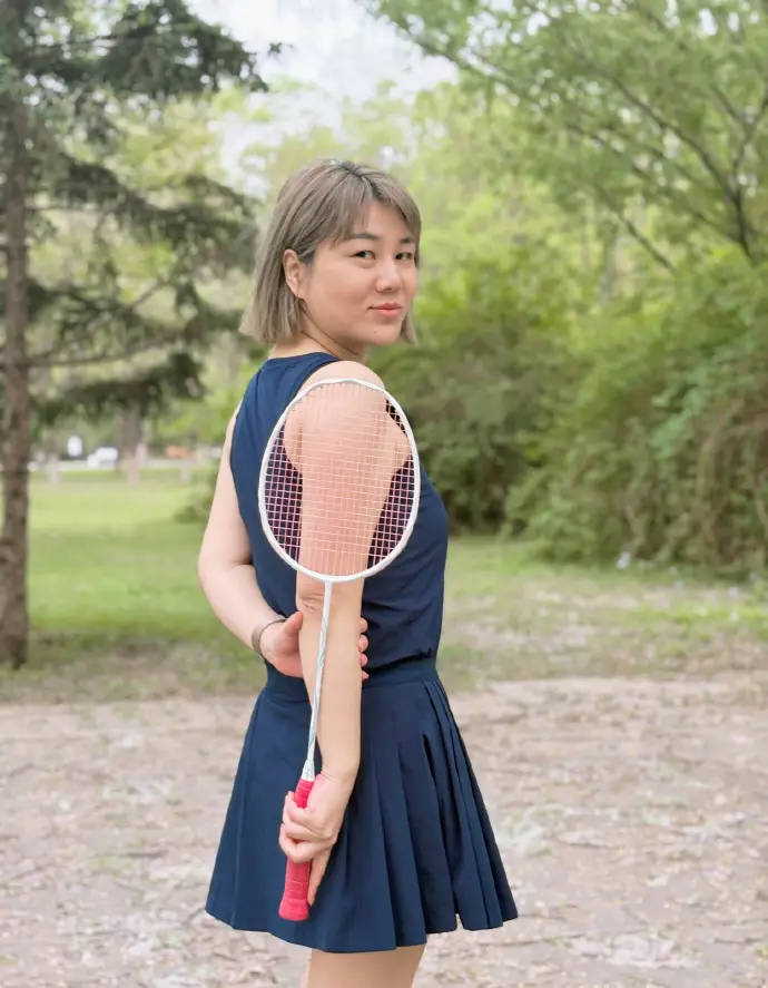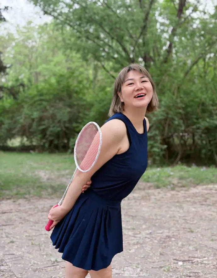 杨天真穿运动短裙笑容甜美。