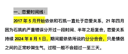 她说石凯和自己妹妹依依是从17年开始恋爱的,期间也有分分合合,但都是小吵架而已。