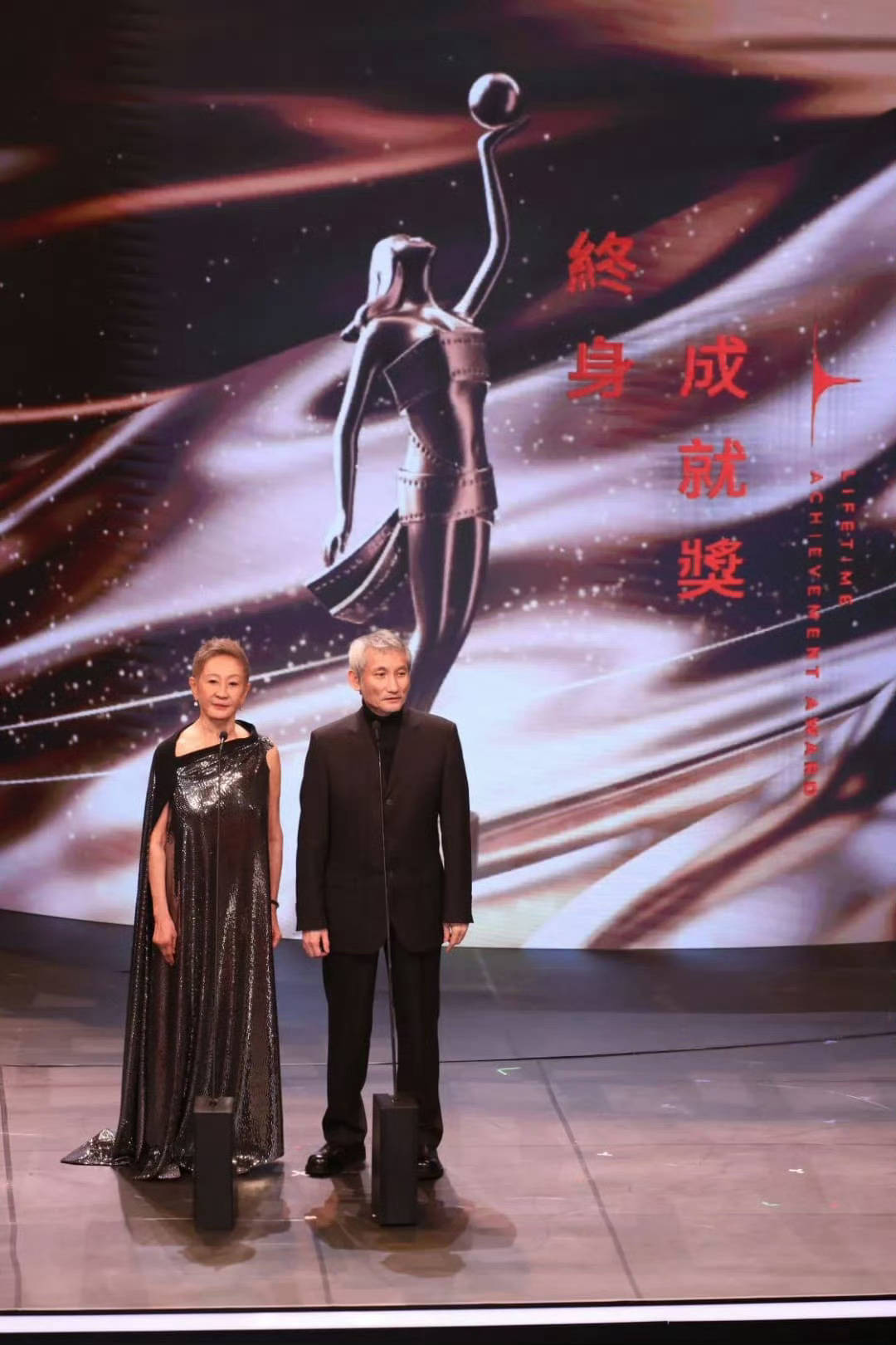 搜狐娱乐讯 导演徐克、电影制作人施南生荣获第43届香港电影金像奖终身成就奖,林青霞担任他们的颁奖嘉宾,老友相聚,格外开心~林青霞讲述跟他们合作的往事,直言“认识他们,也是我的终身成就”。