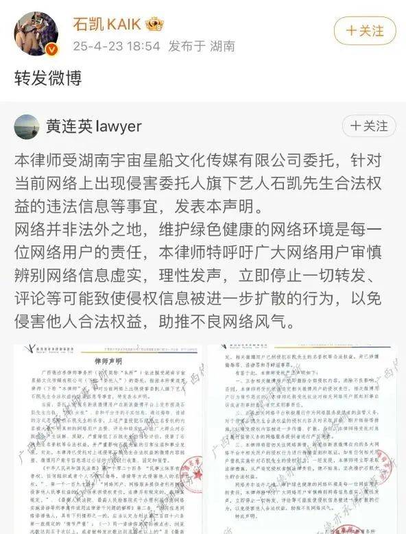 而到了4月23日这一天,有位名叫“H_灰色”的网友突然出来爆锤石凯。