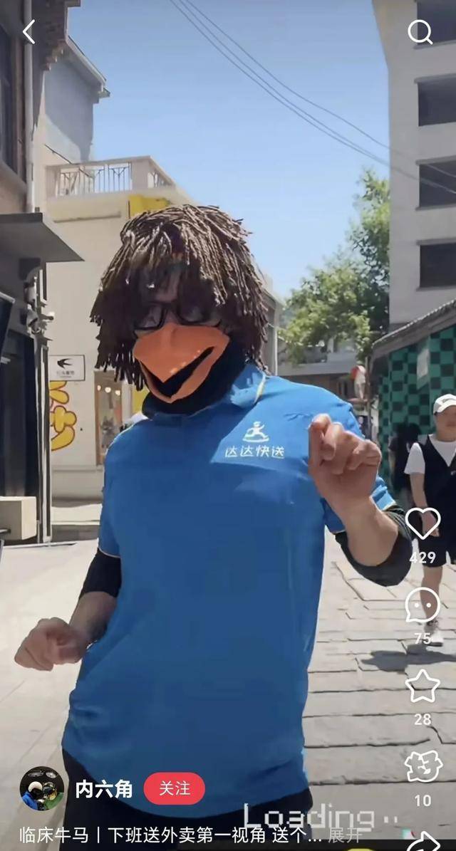 在个人社交账号上,王麦如此形容自己的生活:“下班送外卖,五块钱的单说抢就抢”。镜头里,他骑着电动车穿梭在城市的街道中,于临街店铺或商场中匆匆取走备好的餐品,偶尔兴致来了,还会对着电梯里的镜子扭上一段妖娆的“水蛇舞”。
