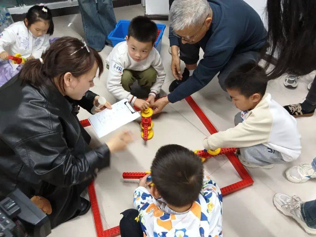 学前组的“乐高陀螺大战”也激烈上演。Apple老师手把手指导孩子们组装陀螺发射器,家长们则化身“超级队友”,与孩子调整发射角度、制定对战策略。旋转的陀螺与亲子间的策略碰撞,让赛场洋溢着欢乐与惊叹。