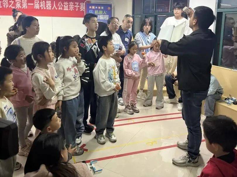近日,信州区紫阳华庭近邻之家灯火通明,欢声笑语此起彼伏。首届机器人公益亲子大赛在此火热开展,吸引了40组家庭参与。活动以“科技+亲子”为主题,通过“乐高陀螺大战”与“极速接力指挥官”两大创意赛事,为3-12周岁的儿童及其家长搭建起探索科技与增进亲情的双向平台。