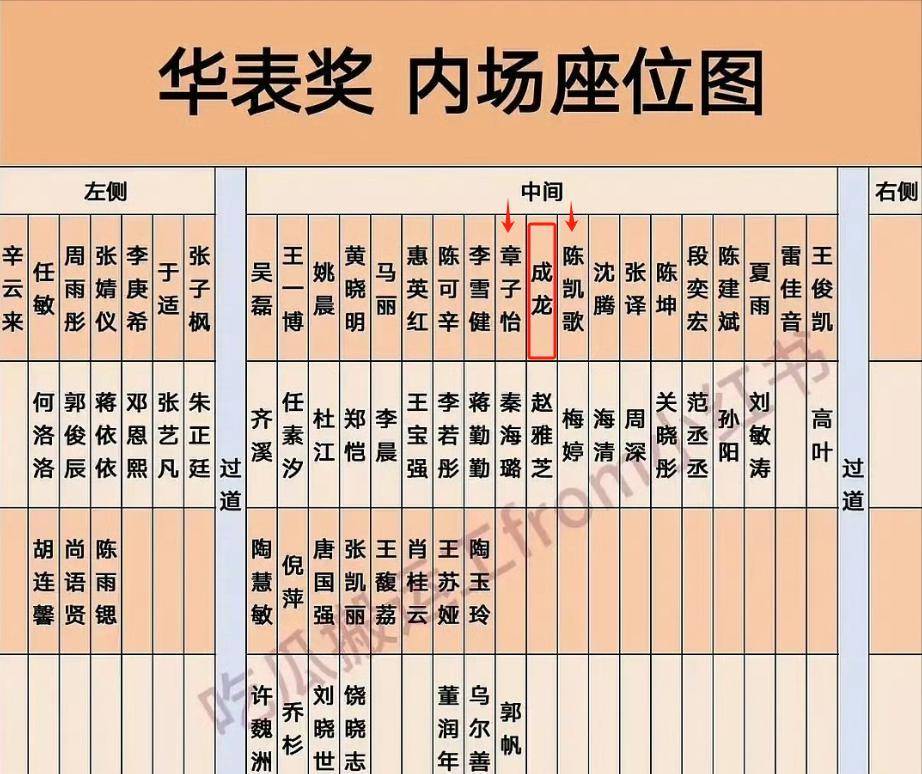 看完位置图之后,只能说这一次的章子怡还真的是赢麻了,她的旁边竟然坐着的是成龙和李雪健。