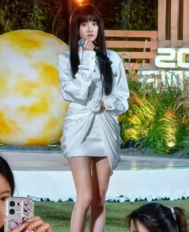 在华表奖的红毯上,她的造型团队终于开窍一次,给她准备了一套能露腿的黑色套装,让她的大长腿展露无遗。