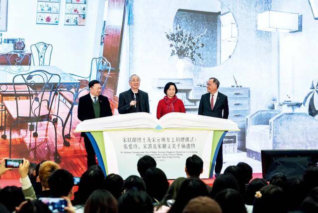 2月12日,香港都会大学举行仪式,接受张爱玲遗产管理人宋以朗(左二)及宋元琳(右二)捐赠的张爱玲的手稿,个人物品,与挚友宋淇、宋邝文美夫妇等人的书信等数千件珍品。图/中新