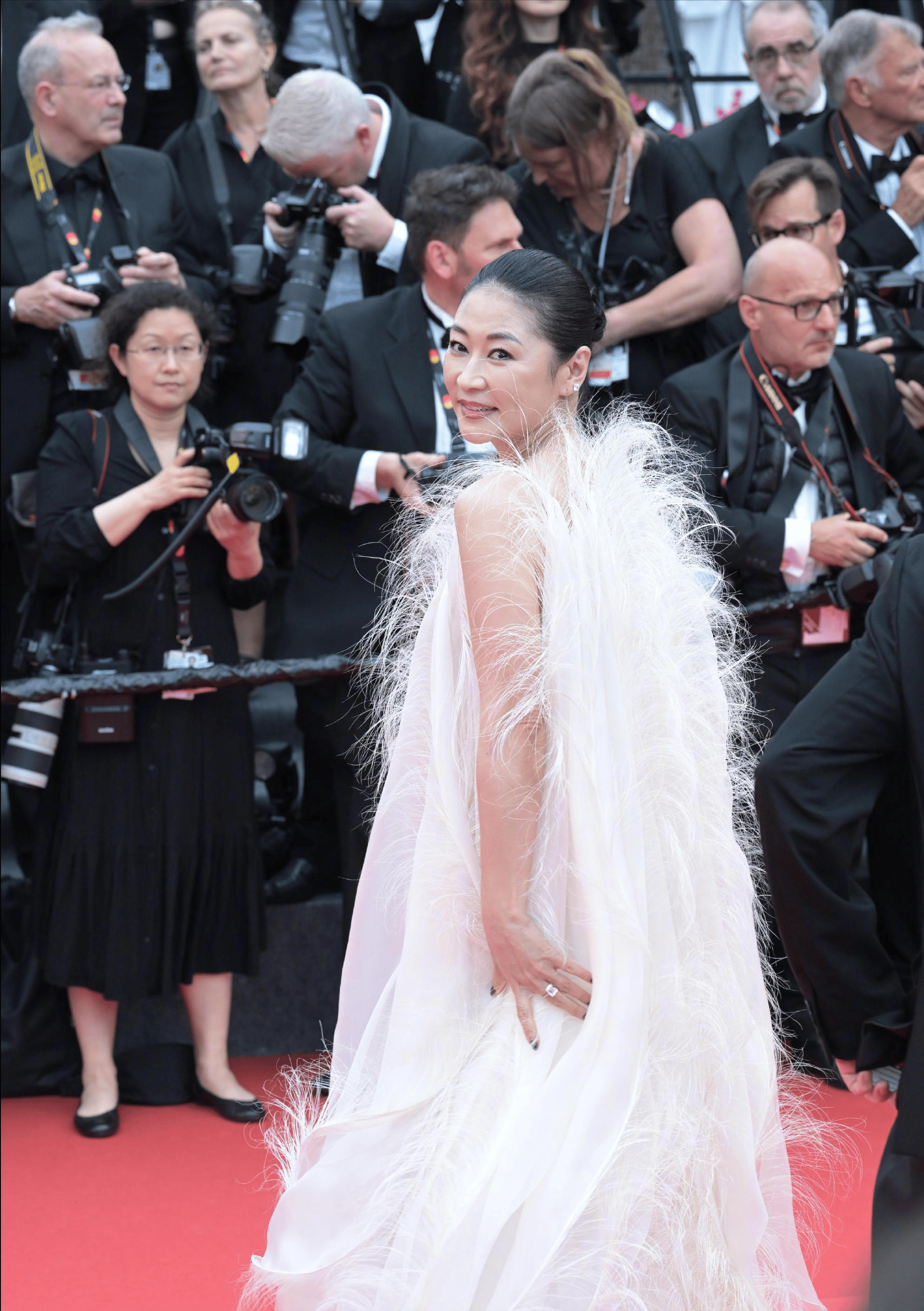 51岁的女演员梁静也现身红毯,她身穿白色羽毛裙亮相,发型非常干净整洁,不过裙子没有腰身,显得松垮又臃肿,有些美中不足。据悉这一身礼服还是某品牌春夏高定,原模特儿穿着非常仙气,可能红毯比较拥挤,没能飘逸起来。
