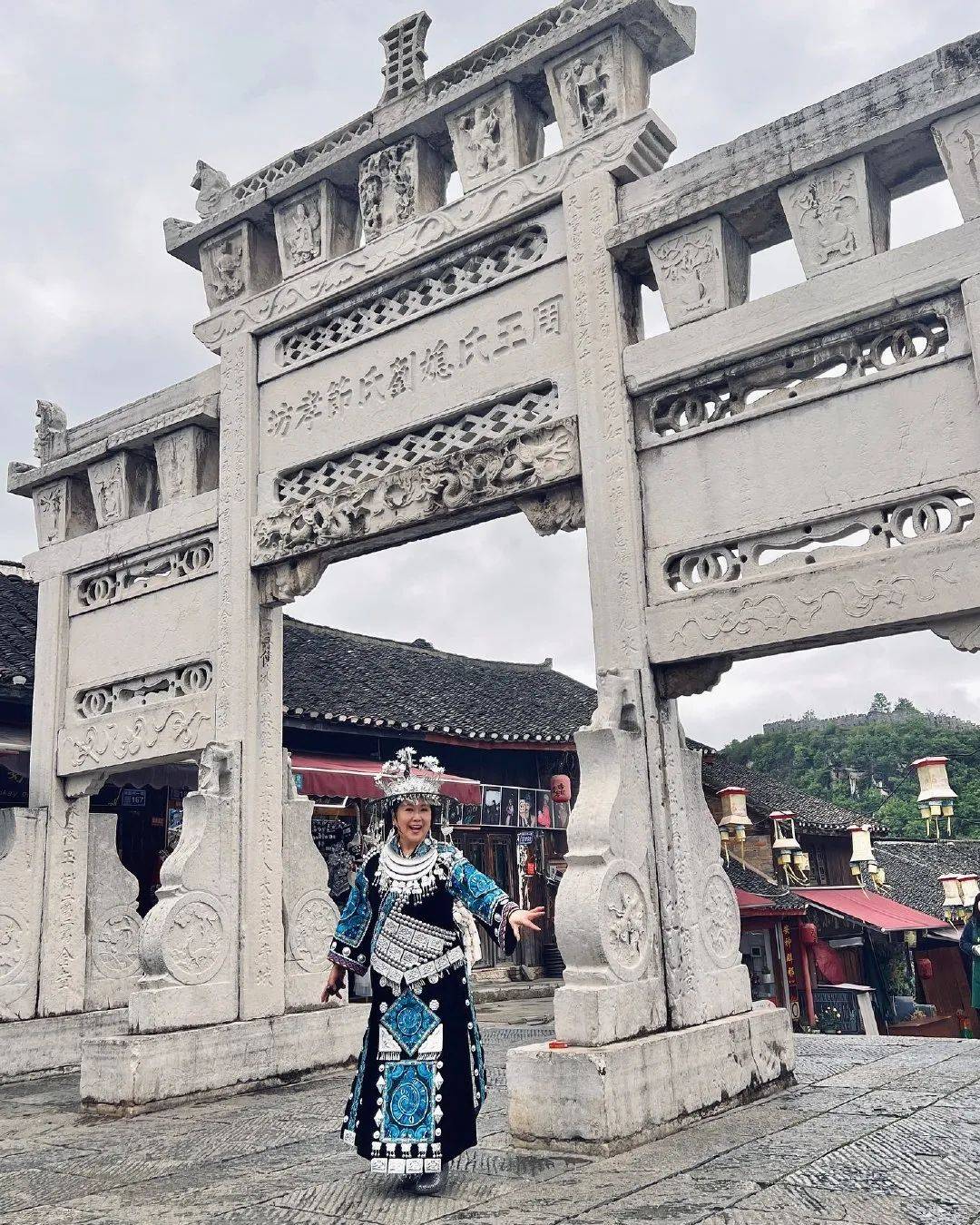 李司棋穿着苗族服饰在一些比较出名的地标打卡,站在一些牌坊或者老街边,李司棋也是表现的相当兴奋,难怪其言谈间对贵州这个地方赞赏有加。