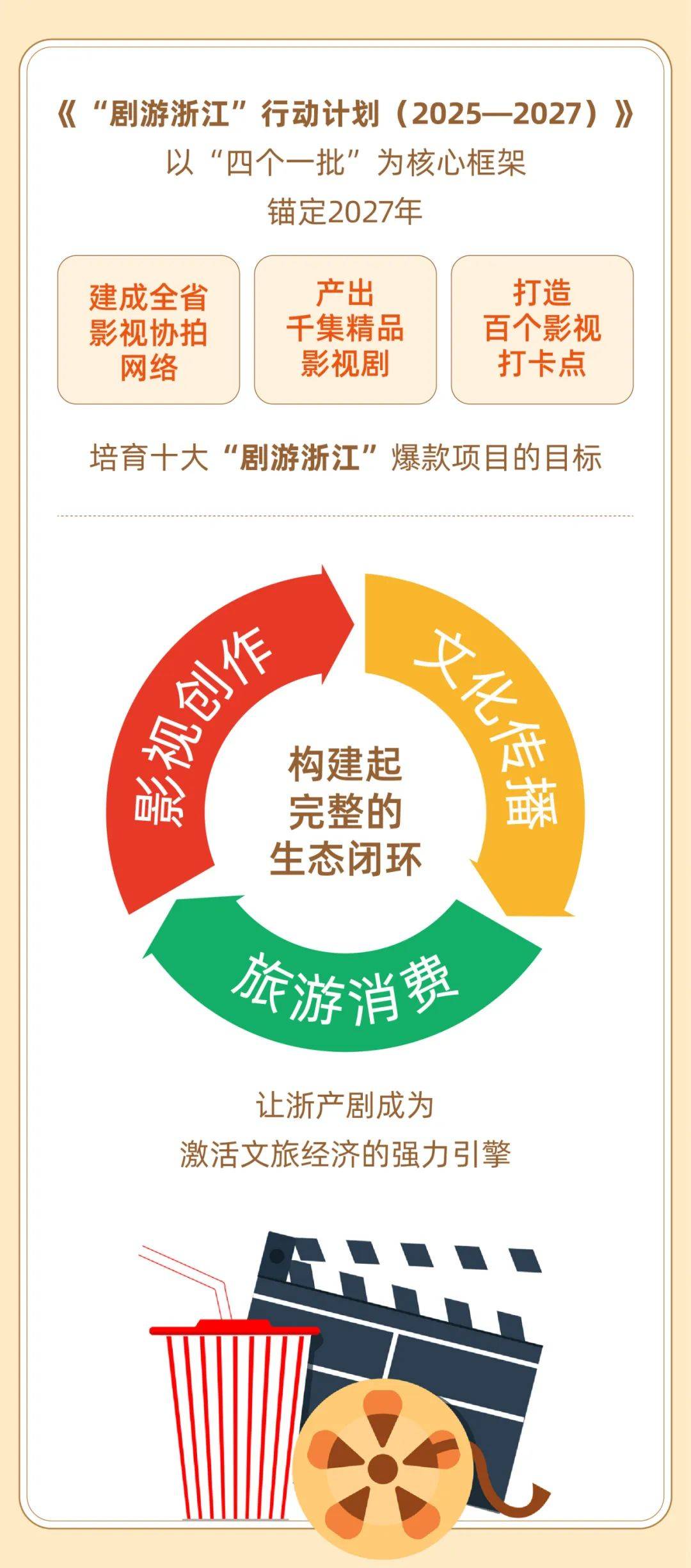 得益于浙江在推动文广旅深度融合发展上的前瞻布局,今年4月《“剧游浙江”行动计划(2025—2027)》(以下简称行动计划)的提出,成为推动文化产业高质量发展的战略新篇。(点击查看→)