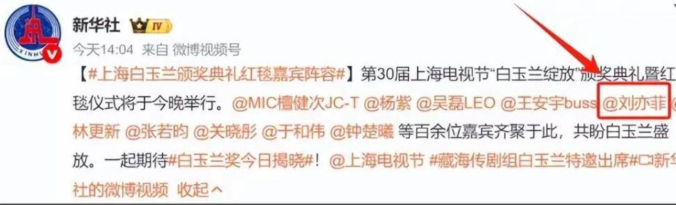 当天,新华社发布的出席名单中是有刘亦菲的名字在,