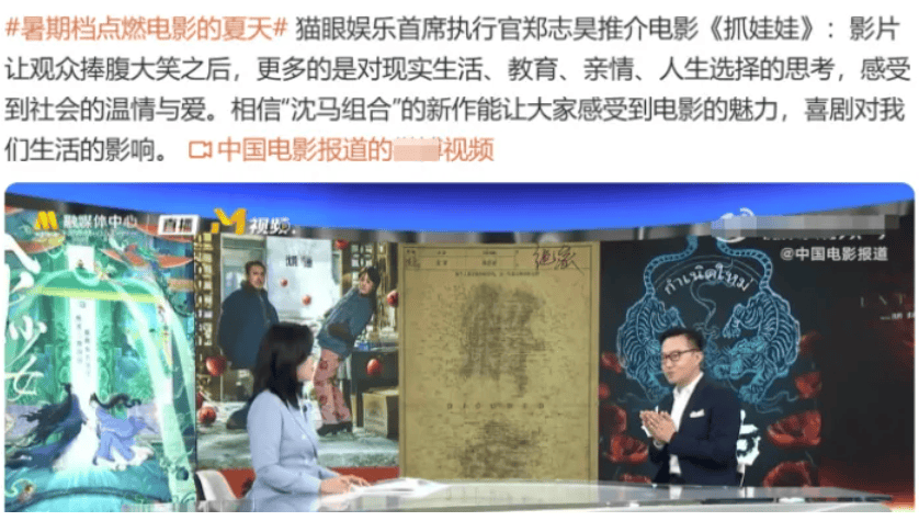 “中国电影报道”官方账号邀请了猫眼首席执行官郑志昊评价电影《抓娃娃》,在央视的采访中人家是这么说的:
