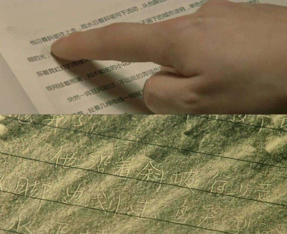 她随意翻看着那些物品,忽然发现一打稿纸,上面有曾经使用过的书写痕迹,姜光明用铅笔涂抹后,震惊地发现这打稿纸前面记录的文字,竟然就是小说《黑雨》的内容,笔迹则出自江娜之手。