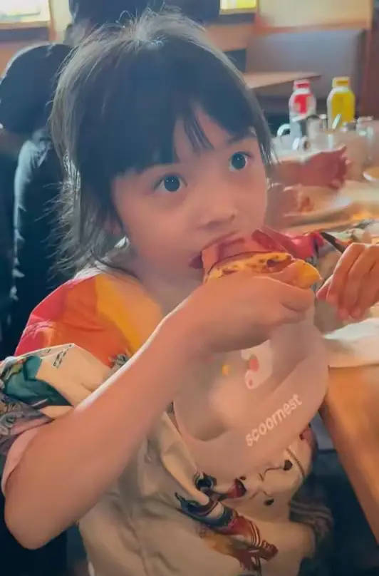 熊黛林与女儿同框合影,他们一家人在晚上一起去看了极光,运气不错追到了一点点北极光!