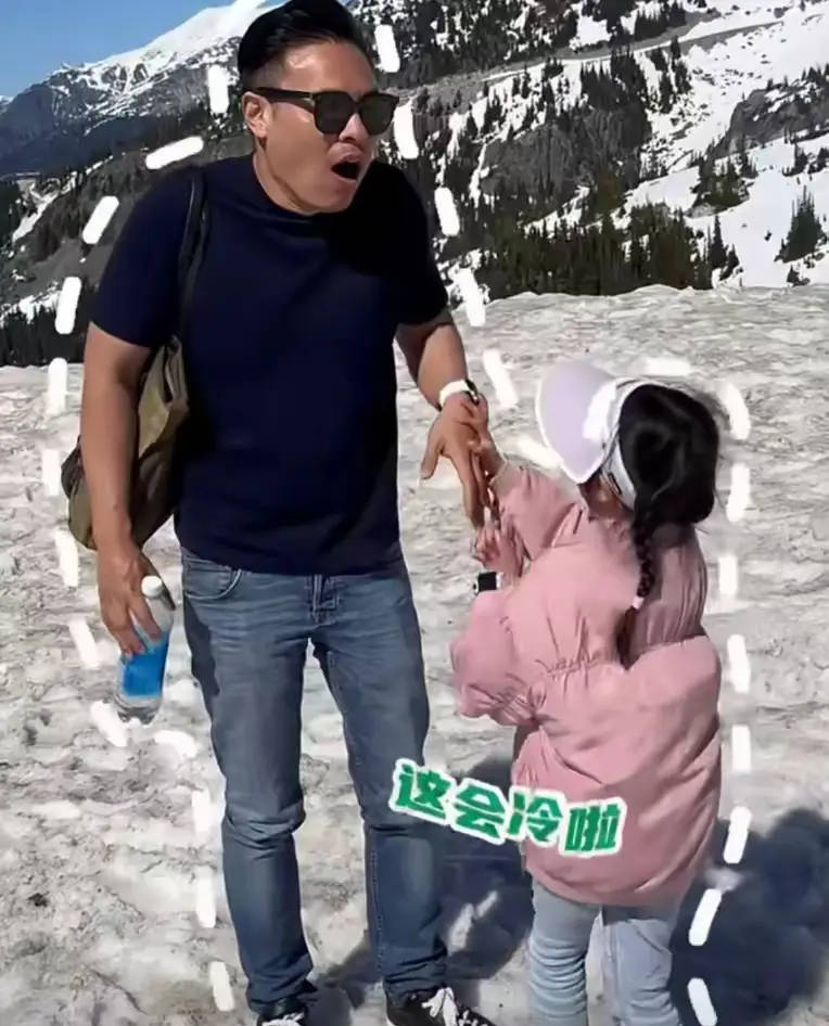 熊黛林女儿握着爸爸的手,郭可颂被冻得发抖。
