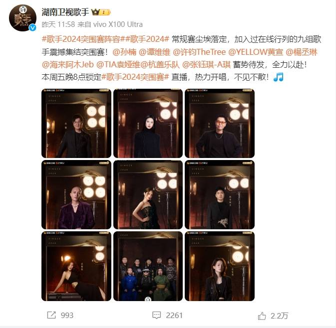 虽然随着节目播出,节目口碑有所下滑,但是依旧无法否认《歌手2024》的火爆程度,每次更新势必霸屏热搜,连续10周拿下收视冠军,地位无法被撼动。而在一系列揭榜赛、袭榜赛、冲榜赛后,《歌手2024》常规赛全面结束,正式迎来决赛前最为关键的突围赛。