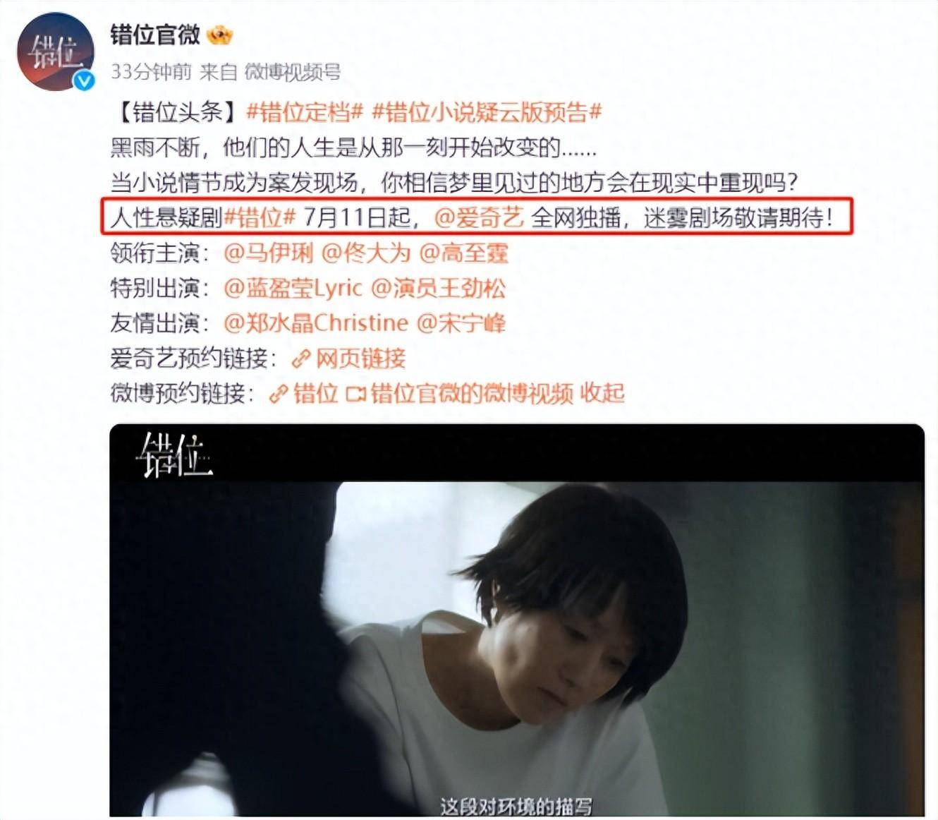 《错位》定档于7月11日全网独播,这一消息瞬间点燃了悬疑剧迷的热情。
