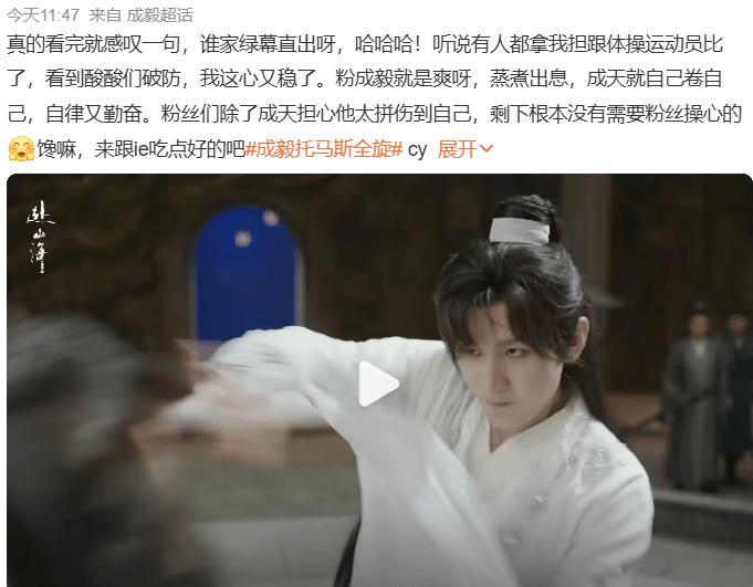 在长达一分多钟的五背景无特效花絮的片段里,居然有被成毅那堪比武行的身手给震撼到。