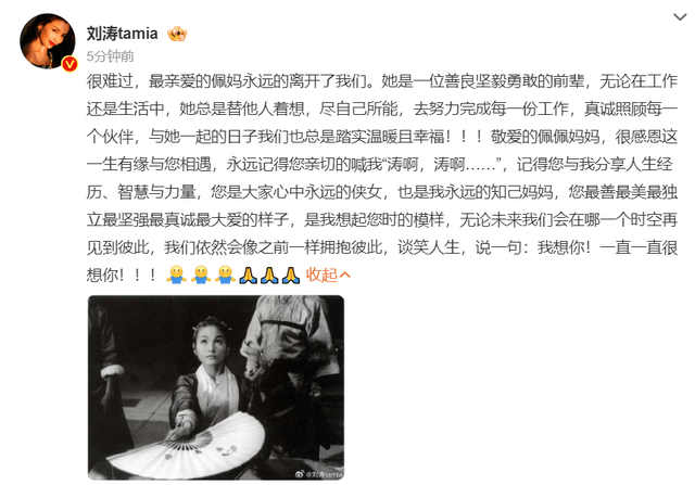 曹可凡,胡雪桦、刘涛、李若彤、惠英红、周星驰等数位业内人士纷纷悼念,郑佩佩生前所属的经纪公司也正式发布讣告,可以得知郑佩佩于7月17日离世,在生命的最后一刻其家人陪伴其左右,走得十分安详。