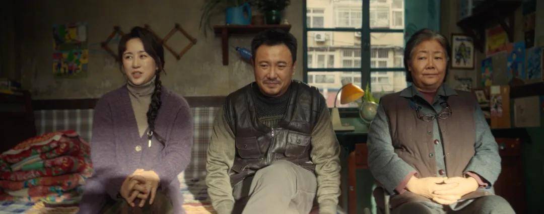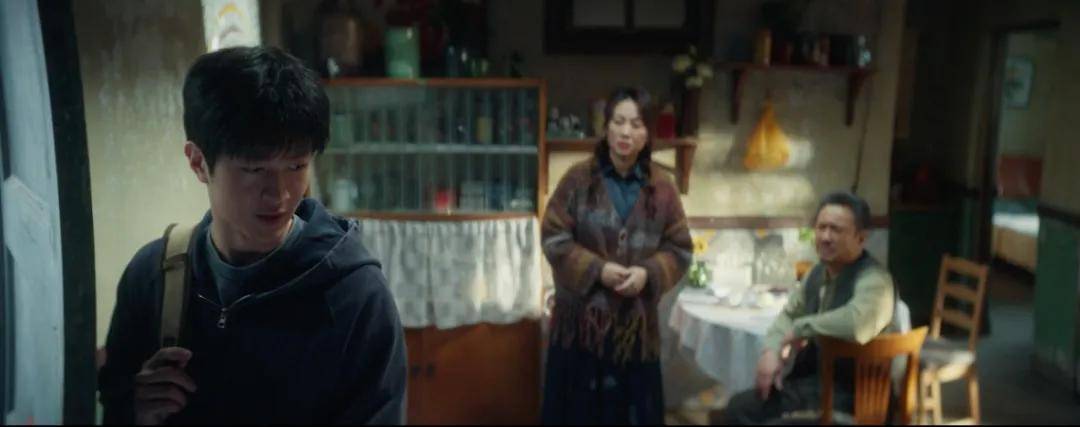 片中有一场戏:老马、春兰和奶奶陪着小马看书,小马是真看书,他们仨却在偷感很重地玩手机,犯困的春兰用头抵住了灯开关,一不小心贴脸关灯。