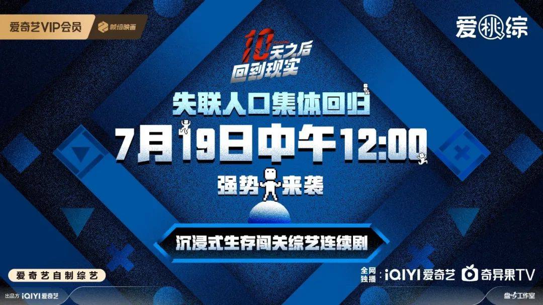 《十天之后回到现实》不仅打破了传统生存综艺的固定模式,让观众看到更多的可能性,同时也带动综艺行业的新的探索。39位闯关者、10天连续录制不断闯关,谁能顶住压力,而谁又被攻破防线?《十天之后回到现实》定档7月19日起,每周五中午12:00,爱奇艺会员提前48小时抢先看,让我们一起期待吧!