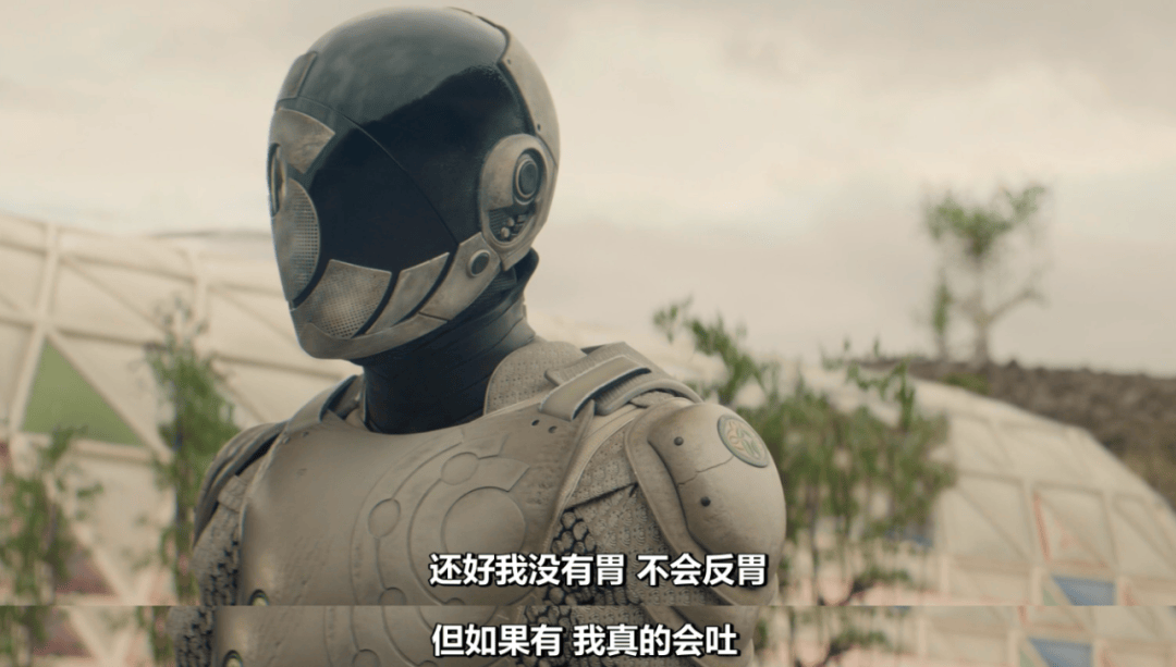 整部剧的质感,乍一看是很地道的科幻味,主角也是太空题材中标配的护卫机器人(类似《异形:普罗米修斯》中法鲨饰演的大卫)。