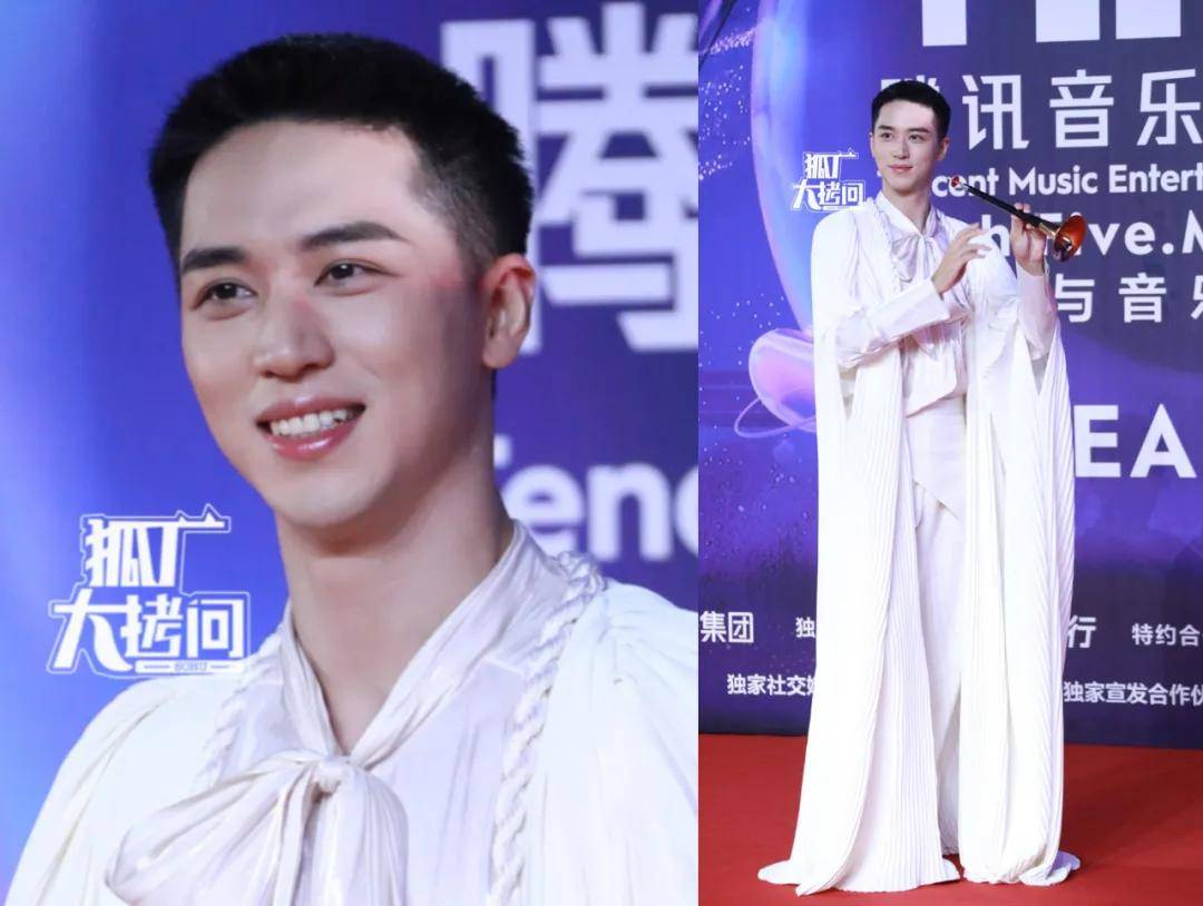 印象中许魏洲是一名演员,没想到(根据不完全统计)他还出过5张专辑、开过9场演唱会,在现在的大环境下应该也算一名歌手吧?他穿了一套像是要去朝圣的白色礼服,精致的妆容(尤其是口红)和超短发格格不入,整个造型一言难尽。