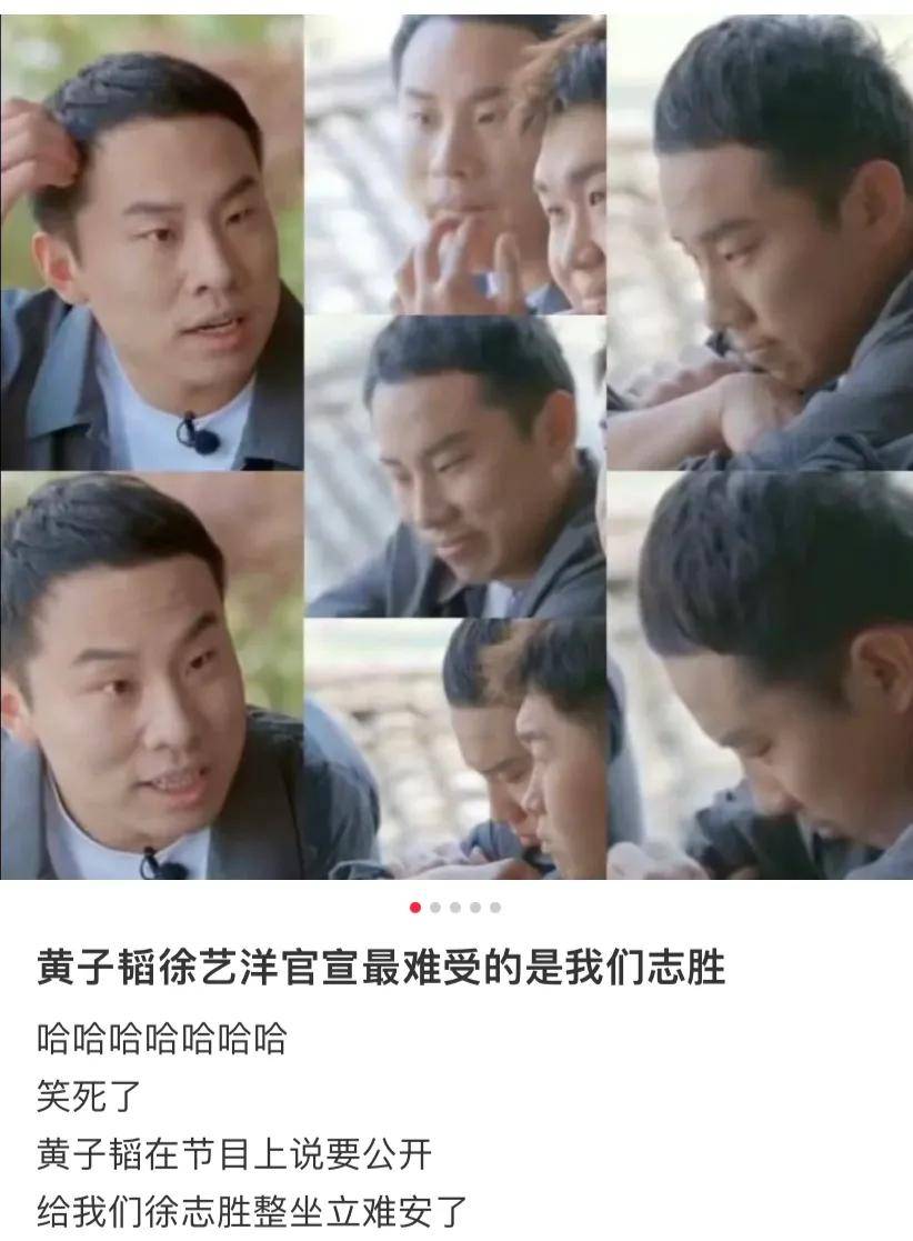 在他们的综艺里,飞行嘉宾只是恋综里的配角,所以当徐志胜在吭哧吭哧往车上装行李,黄子韬则负责感叹:徐艺洋刚刚牵我手了!徐艺洋和黄子韬生气,又需要男配傅晓东和徐志胜夹在中间两头哄。