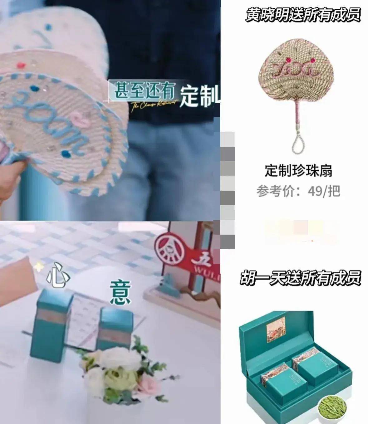 作为老大哥,黄晓明也毫不含糊。为成员们准备的果冻猫毛绒公仔每个成员都不一样,真是用心了。为了忙碌时不觉得无聊,他还准备了飞盘和桌上足球,而且价格也很实惠。另外,他还给全体成员赠送了一把定制的珍珠扇,真是令人佩服!