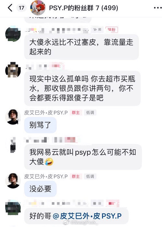 有人在Psy.P粉丝群嘲讽盛宇不如Psy.P。