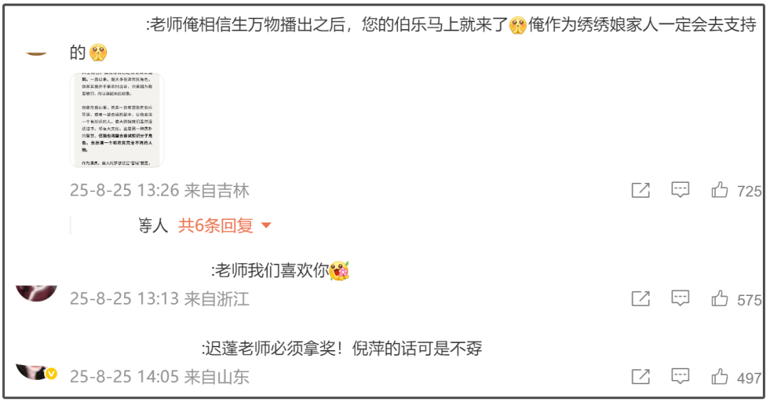 既然海报基础,那奖项就不能基础了吧?有网友表示近几年的奖项,观众的声量也会影响评奖,建议观众多夸夸。随着迟蓬开通社媒,不少观众都跑到她评论区下面给她留言打气,期待她能拿奖。