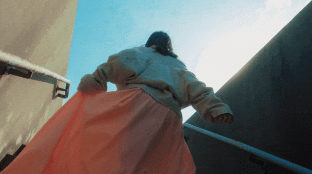 后来,她唱起《劈你的雷正在路上》,歌名霸气地警示大家,不要做不负责任的“键盘侠”;《在青春迷失的咖啡馆》的MV中,她拖着长达百米的黑白布条行走,渐渐被布条束缚,最后将它们塞进行李箱,爬上楼梯,面对阳光。