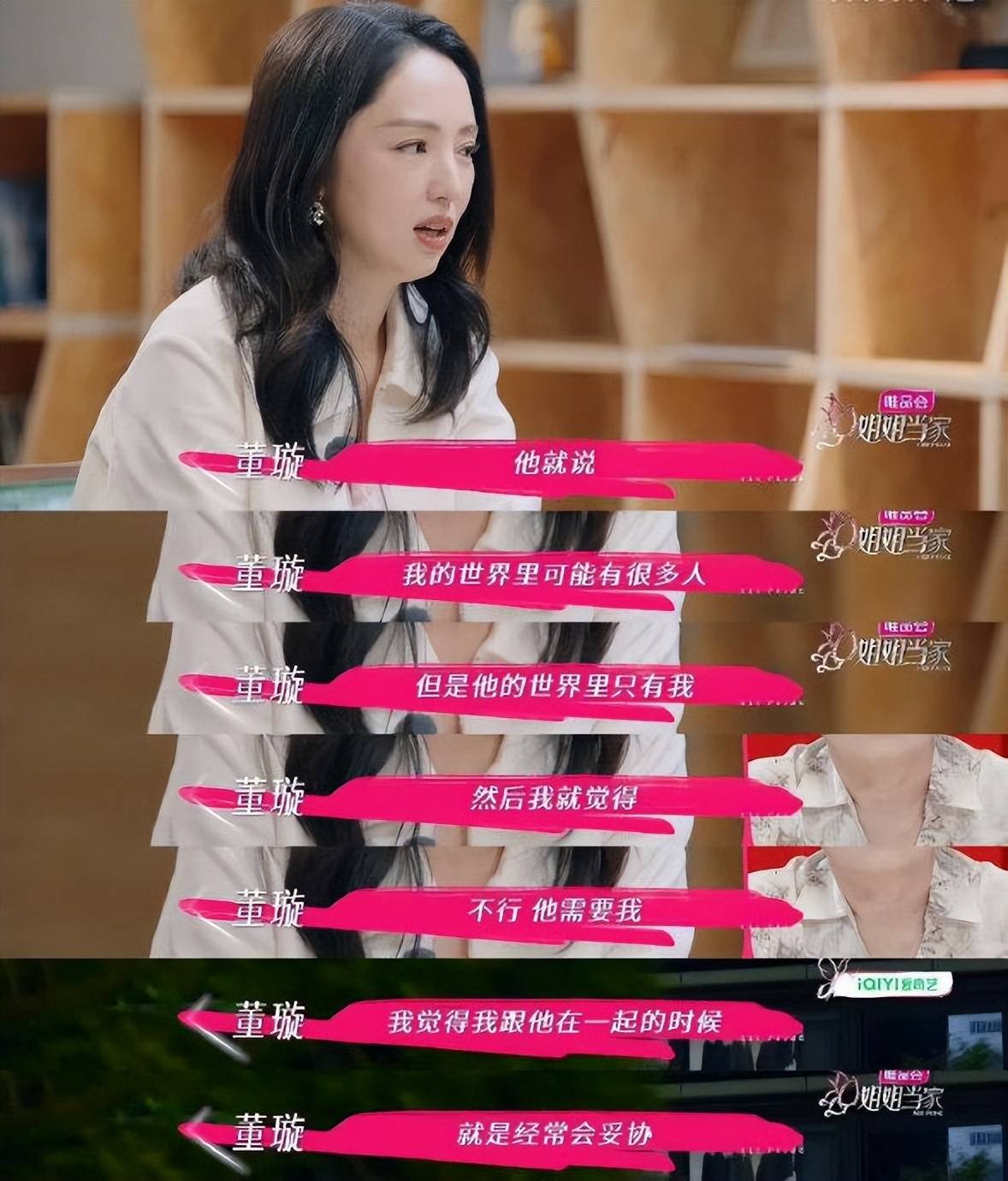 万事万物都能起承转合到自己的过去很惨,自己很努力……并且在节目里一直提妈妈去世了,爸爸走了,全世界只有董璇一个人,涉嫌pua。