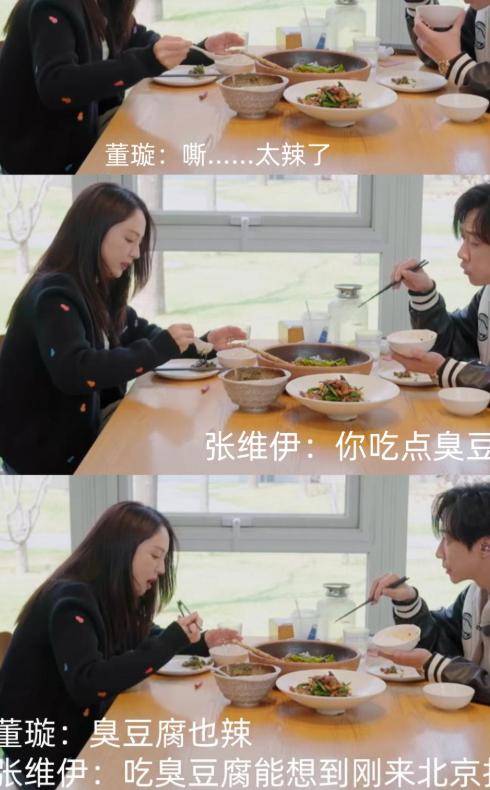 而在日常互动中,他的“错位共情”同样令人诟病。一次在湘菜馆,董璇被辣得直吸气,他没有递水,反而劝她吃臭豆腐。面对董璇的提醒,他却自顾自回忆起初到北京的奋斗经历,试图硬生生把臭豆腐和励志人设挂钩。观众们直呼“绷不住”,认为他完全忽视了伴侣的感受。