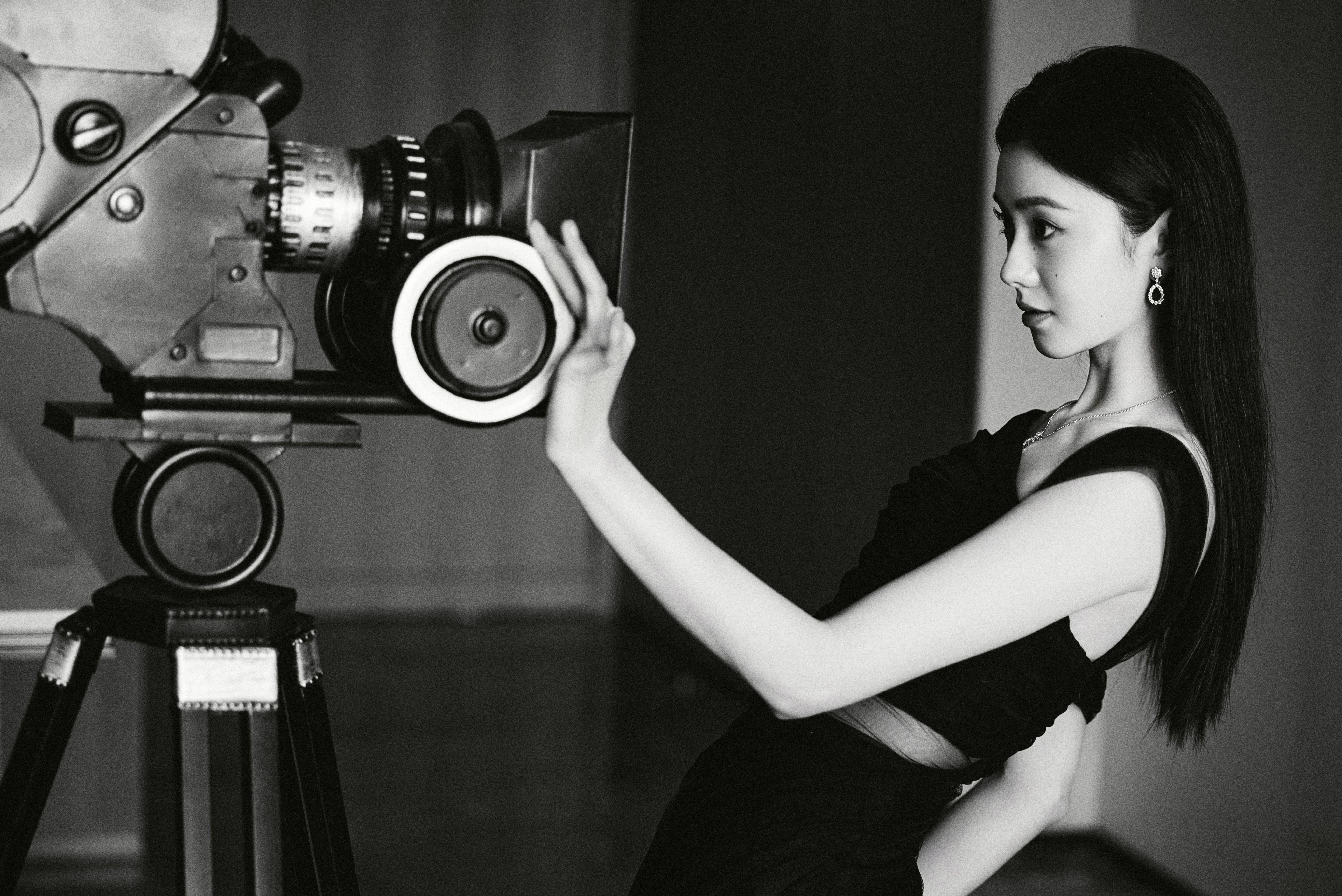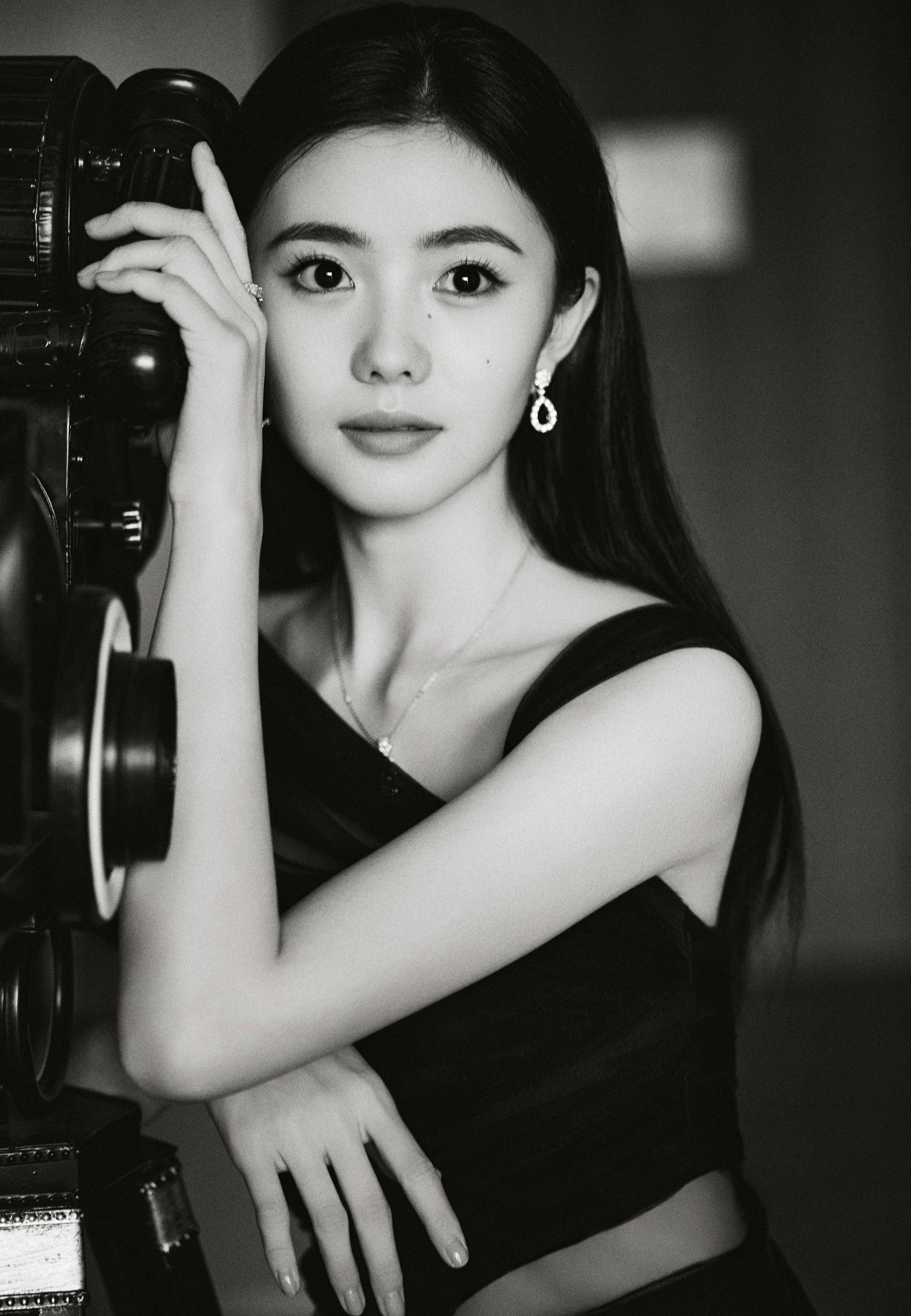 搜狐娱乐讯 近日,刘浩存的一组美照爆出,图中,刘浩存穿黑色吊带裙,靠复古摄像机,笑意轻扬,简约珠宝衬出优雅气质。