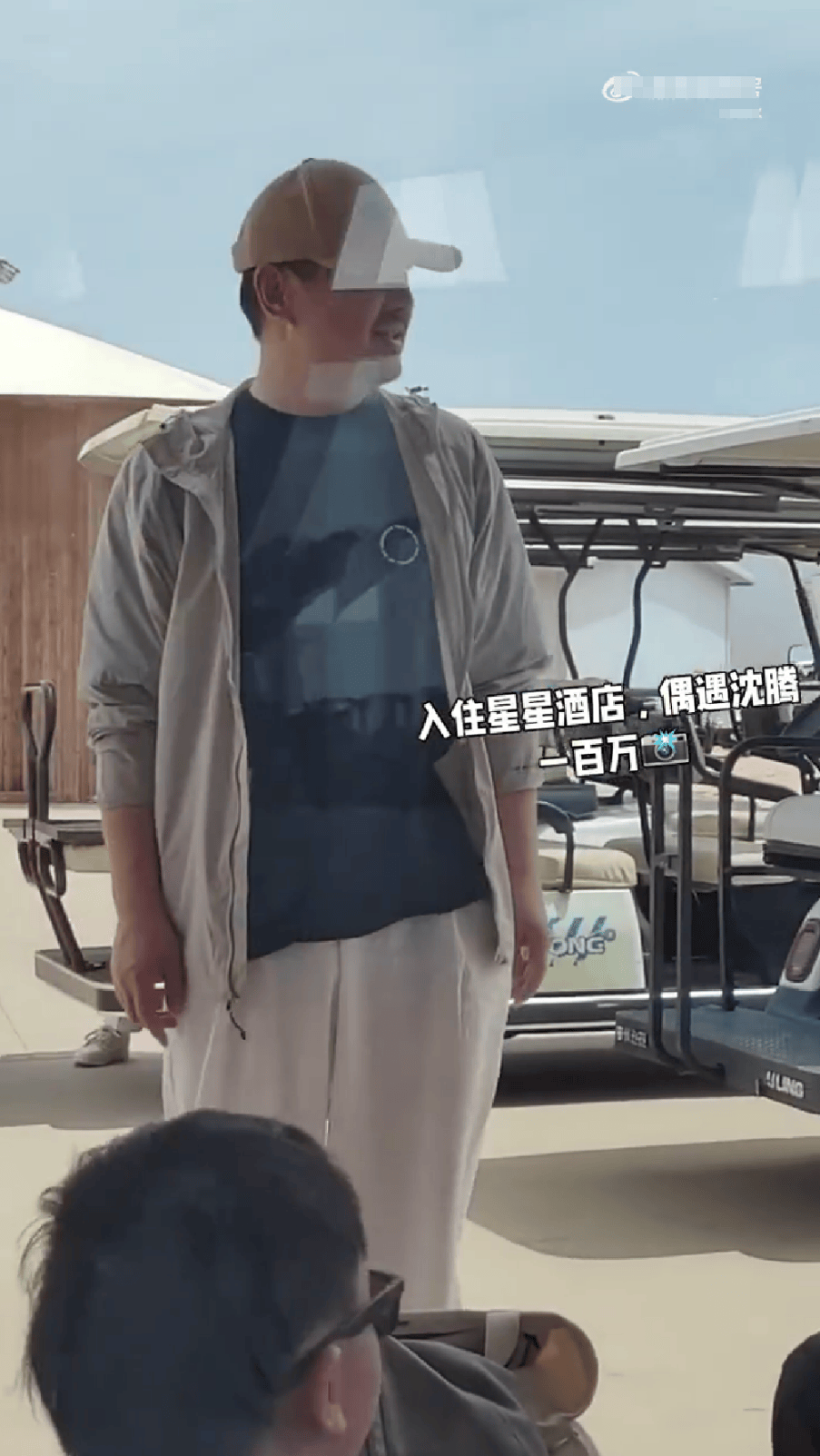 画面中沈腾穿着相当休闲朴素,戴着一顶鸭舌帽,上身穿深色T恤和浅色外套,下身则是一条白色很肥大的裤子,度假中的沈腾显然是不在乎形象,只在乎舒服。留了胡茬的沈腾左右踱步,先是和妻子王琦说了两句话,接着回身又低头和坐在地上的儿子交流,状态相当松弛。