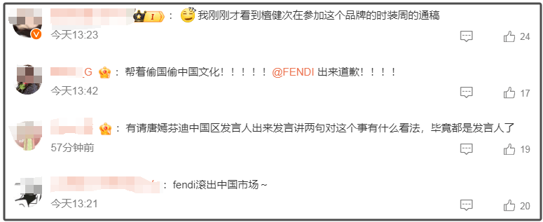 意大利奢侈品品牌FENDI还帮着韩国手工艺人偷过中国结,遭到抵制后仅仅删除了宣传视频,争议爆发之后,FENDI中国代言人唐嫣和檀健次等人集体沉默,无人发声争取权益。