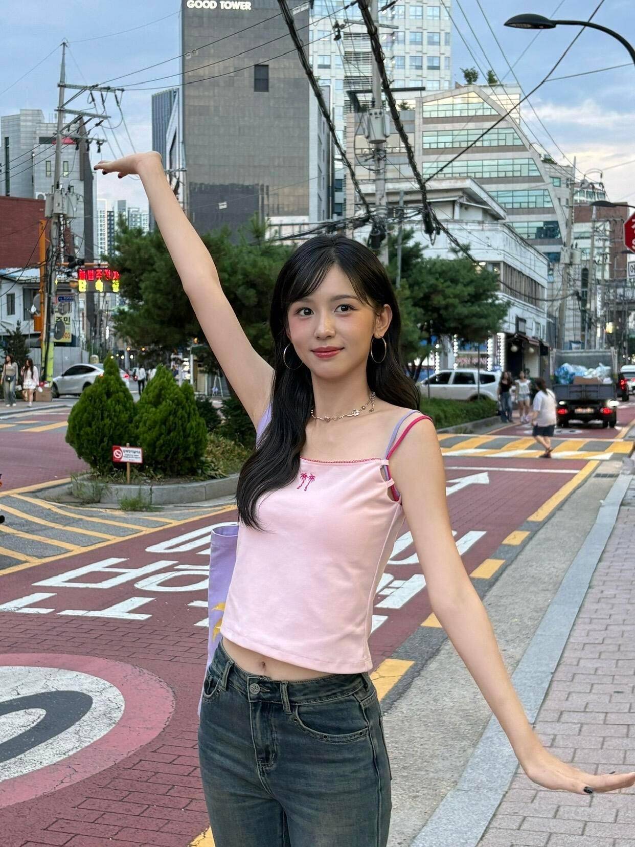 搜狐娱乐讯 近日,周也晒出自己旅行韩国的美照,只见她穿着粉丝吊带好活泼。