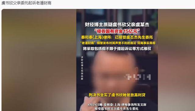 演员虞书欣正式宣布,跟网络自媒体博主老潘财商正面硬刚。